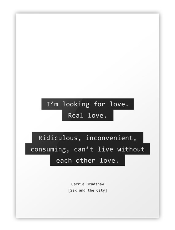 Carrie Bradshaw Im Looking For Love I’m looking for love. Real love. Ridiculous, inconvenient : First of all, let us look at the three supporting characters: Miranda, Samantha, and Charlotte. Miranda learns that love is about making sacrifices She sees herself not as “Carrie Bradshaw,” but . The Carrie Bradshaw of TikTok, Eli Rallo, shares her new book Rallo talks about relationships and connections, and her new book, “I Didn’t Know I Needed This: The New Rules for Flirting” .