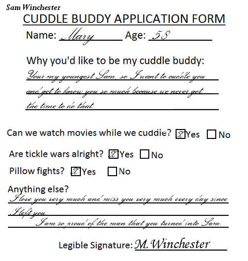 John Winchester Cuddle Buddy Application Form by TheQueenofLight