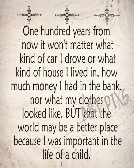 A Hundred Years From Now Life of Child Quote 8 X 10 Art Print